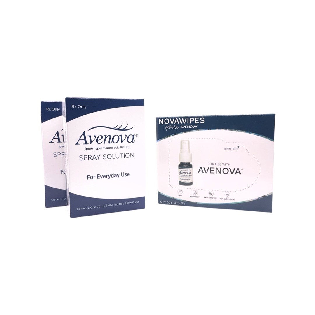 Solución en aerosol hipoclorosa Avenova® (20 ml), paquete de 2 con toallitas Novawipes