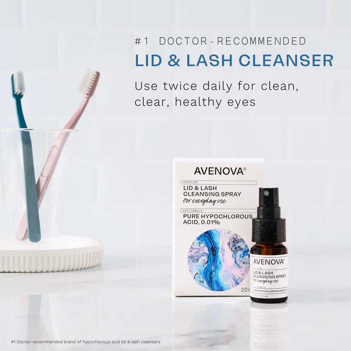 La solución en aerosol hipoclorosa Avenova® se utiliza para limpiar y suavizar los párpados y las pestañas, ayudando a eliminar residuos, exceso de grasa y bacterias que pueden contribuir a la inflamación palpebral, los síntomas del ojo seco y otros problemas relacionados. Puede usarse como parte de la rutina diaria de higiene palpebral para promover unos márgenes palpebrales limpios y sanos.